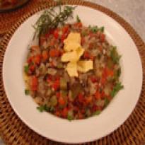 - Adicione alecrim, salsa e cebolinha e cubra com fundo de carne