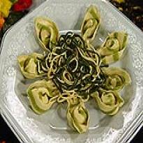 - Para a massa verde bata no liquidificador os ovos com o espinafre e coloque com a farinha em uma vasilha