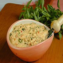 - Junte os pimentões, o alho, as ervas, o azeite de oliva, o creme de leite, o sal e a pimenta-do-reino