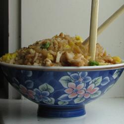 Arroz frito com frango e cogumelo