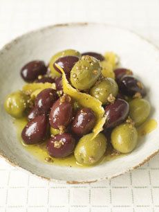 - esmague num almofariz as sementes de coentros, mas não as deixe demasiado finas. Descasque o limão em tiras grossas e compridas e coloque numa tigela com as azeitonas. Esprema o limão e junte-lhe três vezes o volume de azeite extra virgem. Tempere com sal, pimenta e as sementes de coentros esmagadas. Verta sobre as azeitonas e deixe marinar. Quanto mais tempo marinarem, melhor será o seu sabor.