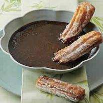 - Passe os bastões pelo açúcar e sirva com a calda de chocolate.