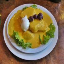 - Servir as batatas cobertas com o molho e decoradas com as folhas de alface, os rabanetes, os ovos cozidos, cortados ao meio, e as azeitonas
