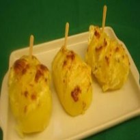 Se desejar, junte 1 colher (chá) de alecrim picado ao creme de gorgonzola. Se preferir, utilize batatas menores do tipo bolinha. Cozinhe-as inteiras, com casca, escorra e deixe esfriar. Corte ao meio e, com o auxílio de uma colher, (chá) escave as batatas. Junte a polpa retirada ao creme de gorgonzola e recheie as metades das batatas. Leve ao forno até começar a dourar a superfície. Você pode servir as batatas espetadas em palitos de madeira ou espetos plásticos coloridos ou colocá-las sobre tábuas de madeira para que cada pessoa se sirva conforme desejar. Batatas pequenas recheadas são muito utilizadas em festas e reuniões do tipo “finger foods”, onde os convidados se servem com as mãos dispensando o uso de talheres e pratos. Esse tipo de serviço é utilizado cada vez mais, pois, além de facilitar o trabalho de quem organiza o evento, permite que as pessoas comam em pé e as reuniões se tornem mais descontraídas.