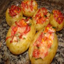 - Recheie as batatas com essa mistura, apertando bem, para caber bastante recheio