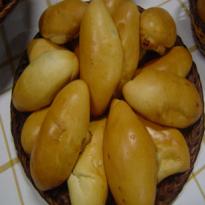 - Coloque num recipiente os ingredientes secos, com exceção do sal, misture bem, acrescente os ovos, parte da água e o fermento até obter uma massa homogênea, coloque o sal e a manteiga, sove a massa até acertar o ponto da massa, deixe descansar por 20 minutos.