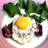 - Frite o ovo (não esqueça de polvilhar sal), e coloque sobre o bife.