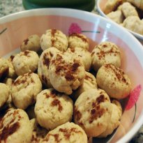 - Misturar todos os ingredientes, exceto a canela, e amassar até formar uma massa homogênea. Fazer bolinhas de mais ou menos 1 cm e colocar afastadas umas das outras, em assadeira untada.