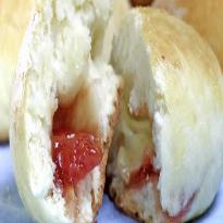 - Abra cada parte em um retângulo, recheie com o queijo e a goiabada e feche dando o formato de bisnaguinha.