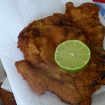 - Passe cada bisteca dos dois lados pela farinha de triga, o ovo e a farinha de rosca e coloque delicadamente no óleo.
