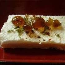 - Pingue bolinhas de vinagre no azeite gelado com o auxílio de uma colher de cafezinho. Quanto mais gelado estiver o azeite, mais redondas ficarão as esferas.
