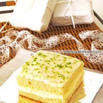 - Polvilhe as raspas de limão e corte o bolo em quadrados