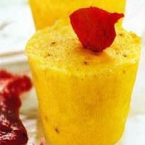 - Decore com flor de manjericão roxo e goiaba desidratada
