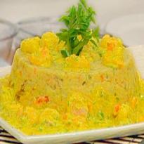 - Bata os ovos inteiros até que fiquem bem fofo, misture com as batatas amassadas e com o peixe, tempere com pimenta do reino e enforme numa forma de buraco