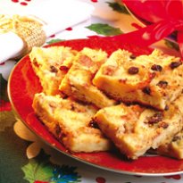 - Cubra com bananas em rodelas e as uvas passas e leve ao forno moderado pré-aquecido (180º C) por aproximadamente 20 minutos