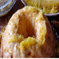 Com uma faca solte o bolo da forma. Desenforme e vire..