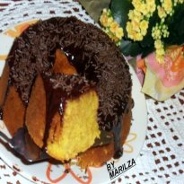 - Desenforme e jogue por cima uma ganache de chocolate feita com 200 grs de chocolate ao leite e 1 caixinha de creme de leite.