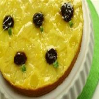- Coloque delicadamente na fôrma reservada, sobre o abacaxi, e leve ao forno por 40 minutos ou até que um palito, depois de espetado na massa, saia limpo