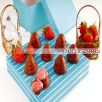 - Espere esfriar e bata no liqüidificador o leite condensado, os morangos e a essência