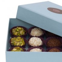 - Quando estiver frio, faça pequenas bolas, com a ajuda de uma colher de café. Passe as bolinhas na farofa de pistache restante e coloque em formas de papel.