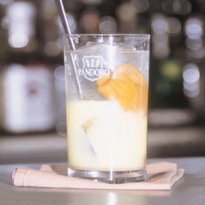 - Num copo alto, coloque primeiro o suco de caju e o açúcar e misture