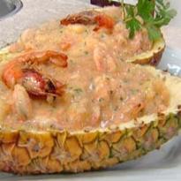 - Recheie com o creme de camarão o abacaxi.