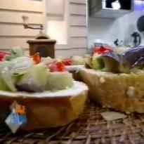 - Feito isso em todas as fatias, cubra com a caponata reservada.