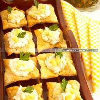 - Coloque no centro das massas, decore com cubos de abacaxi e salsa