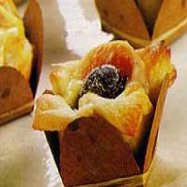 - Recheie as massas com o creme reservado, distribua as uvas e as fatias de figo e leve ao forno por mais 15 minutos, ou até dourar