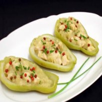 - Preencha as cavidades dos chuchus com a mistura, pressionando delicadamente, e arrume-os em uma travessa