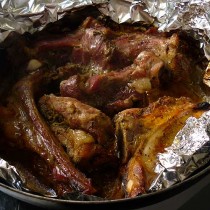 - Feche a assadeira com outra folha de papel alumínio. Asse, coberta, até a carne ficar macia e com a cor avermelhada.