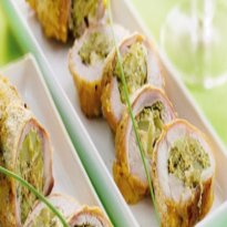 Coxa e sobrecoxa de frango recheadas com brócolis