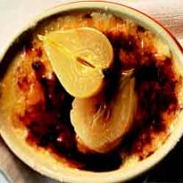 - Distribua o creme entre seis ramequins (potinhos) refratários, com capacidade para 3/4 de xícara, e leve ao forno baixo (150 ºC) em banho-maria (a água deverá atingir 2/3 da altura do ramequim) por 30 minutos ou até que o creme fique firme na borda e ligeiramente cremoso no centro