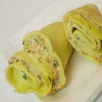- Espalhe sobre as panquecas, de modo a formar uma trouxinha