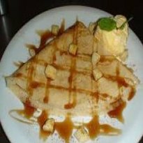 Crepe de Milho com Doce de Banana e Sorvete de Queijo
