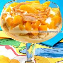 - Cubra com o doce de leite e decore com os pêssegos reservados