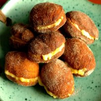 - Passe pela mistura de açúcar e canela.