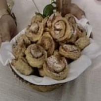 - Separe a massa em quatro pedaços e abra cada um deles colocando a canela e o açúcar previamente misturados