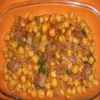 - Acrescente o grão de bico, as folhas de louro e, em seguida, a água. Feche a panela e cozinhe por 55 minutos a partir do início da fervura ou até a carne e o grão de bico ficarem macios.