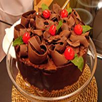 - Retire o papel, coloque o recheio de mousse e depois decore com raspa de chocolate e cereja.