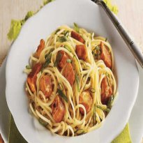 - Desligue o fogo, misture o espaguete, o tofu e a cebolinha