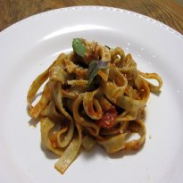 - Acrescente a lata de tomates pelados e deixe cozinhar um pouco.