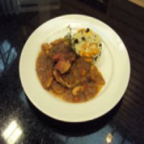 - Numa panela, refogar a cebola no azeite, acrescentar o vinho e o caldo de carne
