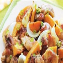 - Leve ao forno por 25 minutos ou até o frango dourar e a abóbora ficar macia