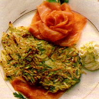 - Sirva as fritadas com uma colherada de creme e uma fatia de peixe defumado.