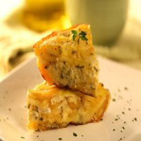 - Bata em uma tigela os ovos com o creme de leite, a salsinha, o fermento e o sal