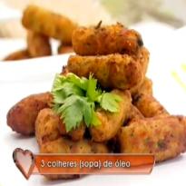 - Com as mãos, pegue porções de massa, modele como croquete, passe na farinha de rosca e frite em óleo quente até dourar.