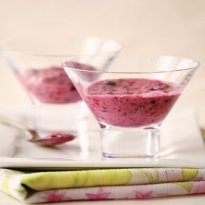 - Bata o morango no liquidificador com a água de coco e o adoçante até formar um creme