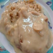 - Numa panela, derreta a margarina, doure a cebola, junte a farinha de trigo e misture bem