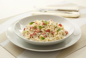 - Retire do fogo, finalize com o manjericão e sirva imediatamente.